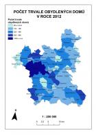Počet trvale obydlených bytů z toho podíl v rodinných domech (%) v roce 2012 |